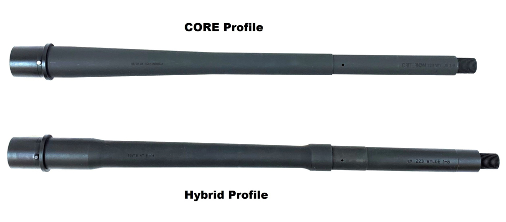 The CORE Barrel Profile is a continuous taper and is about 4 ounces lighter than the standard Hybrid Profile Barrels we offer. This barrel profile was designed to aid in ballancing the rifle spefically when using lights, lasers and suppressors by keeping most of the weight on the chamber end of the barrel, at the mid-point of the rifle.