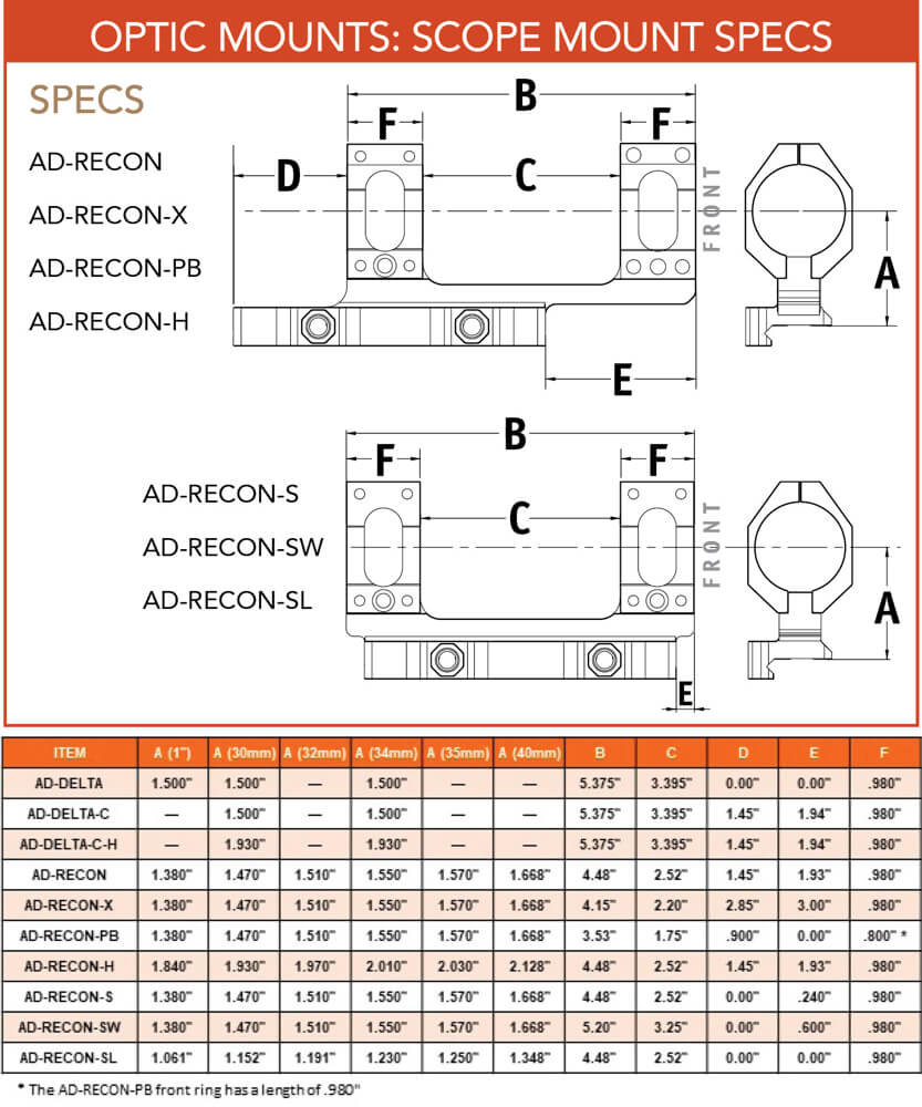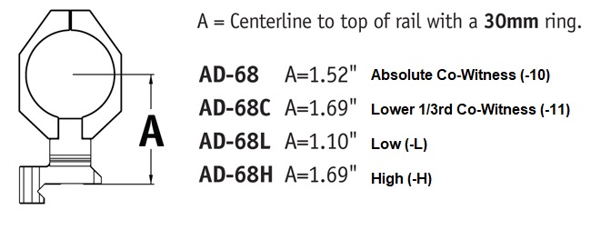 The chart below shows the standard centerline heights of our complete line of Red Dot Mounts.
